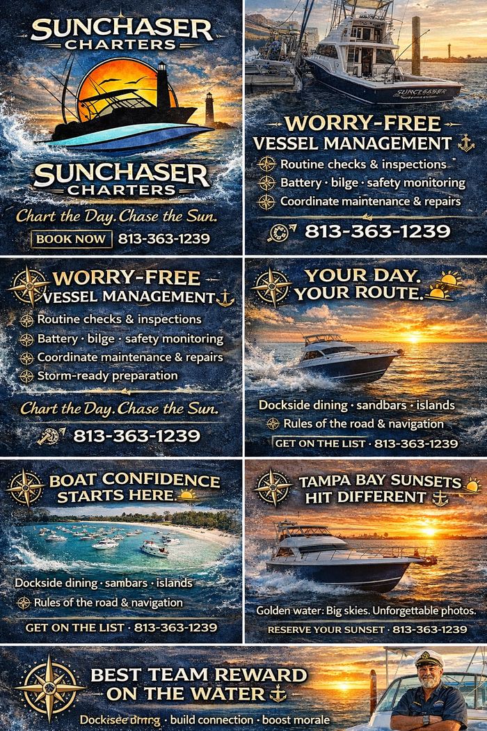 Captain Doug is a Florida-native, U.S. Coast Guardβcredentialed captain with decades of hands-on experience navigating Tampa Bay. SunChaser Charters delivers customized charters, practical boater training, professional vessel management, and dependable hurricane preparationβgiving you confidence on the water and trusted local expertise when it matters most.